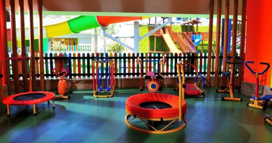 В детском клубе имеются бассейн с двумя водными горками, детская игровая площадка, игровые комнаты, кинотеатр, ресторан («шведский стол»), хобби-клуб, мини-фитнес. Помещение клуба оборудовано камерами видеонаблюдения, на полу – антибактериальное покрытие. Здесь в течение дня дети могут принимать участие в веселых и занимательных мероприятиях, а по вечерам показывать представления мамам и папам на сцене мини-амфитеатра.