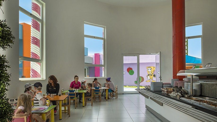 Детский ресепшен; еженедельные празднования дней рождений; система наблюдения за детьми для родителей по ТВ каналу в номере; комната-лабиринт; батуты и тематические игровые площадки; детский ресторан; кривые зеркала; детские шоу; еженедельные шоу с участием детей; кинотеатр (3 кино-салона); уголок для приготовления детского питания; комната для сна; горшок; уголок для смены подгузников; комната с игровыми автоматами; слюнявчик; детские стулья.