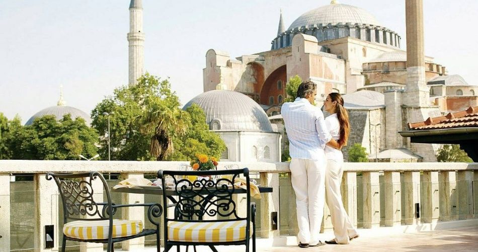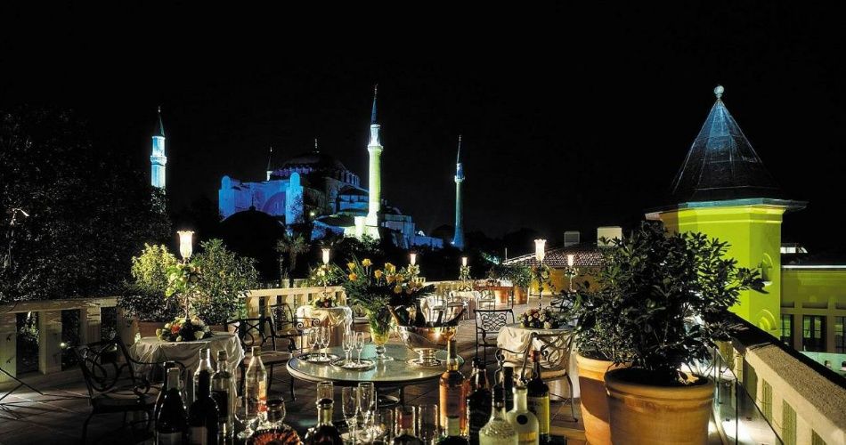Four Seasons Hotel Istanbul at Sultanahmet  - роскошный отель находится в 25 минутах езды от международного аэропорта Стамбула и в самом сердце древнего легендарного города. Расположившись здесь, вы сможете насладиться атмосферой старины и осмотреть основные достопримечательности турецкой столицы. Совсем недалеко от отеля расположена Голубая мечеть и Дворец Топкапы. Окна номеров отеля выходят в живописный внутренний дворик – это создает ощущение того, что вы находитесь не в современной столице, а в уютном средневековом городе. Интерьеры номеров отеля необыкновенно изящны и выполнены в средневековой стилистике.