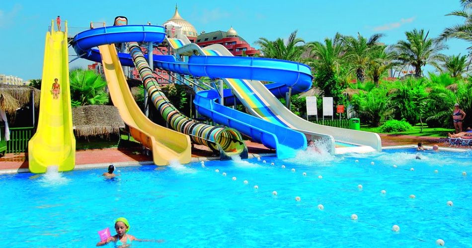 Детские клубы: 2 (мини-клуб 4–12 лет; юниор-клуб 13–16 лет); детский буфет, детское питание; детская площадка; луна-парк; детский бассейн: 1, водные горки: 1; детская коляска: залог