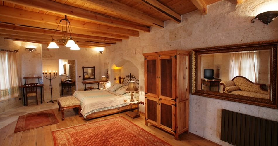 Пещерные номера с каменными арками в отеле Kelebek обставлены традиционной мебелью и украшены тканями ручной работы. В каждом из них имеется кондиционер, телевизор, спутниковое телевидение и CD-плеер, фен и гигиенический набор. В ванных комнатах с мраморными стенами установлены ванны либо душевые кабины.