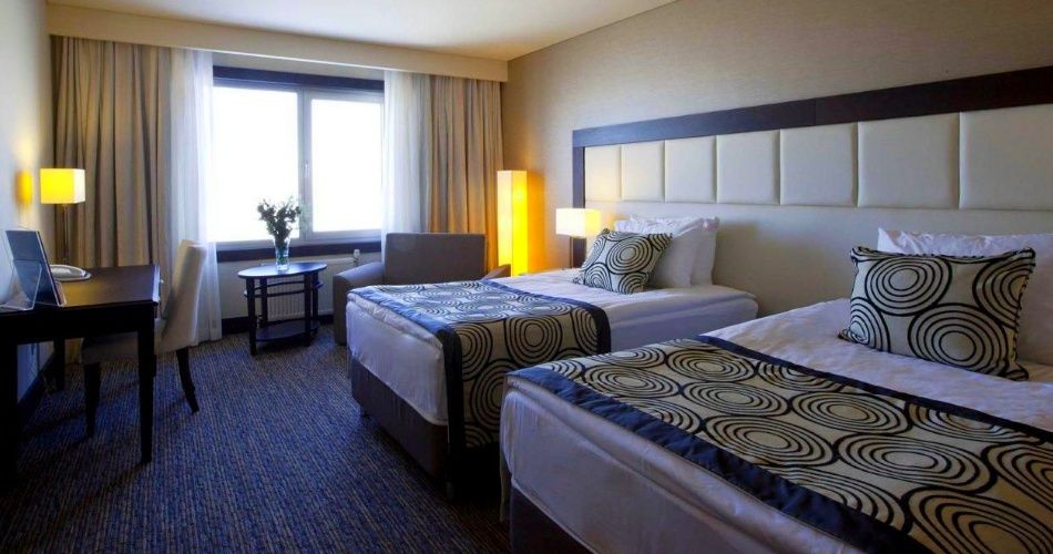 в номерах: огромные окна с панорамным видом на город (все чётные с видом на город, нечётные на горы и отель Polat Renaissance),  кондиционер, в душевой пол с подогревом, халат, тапочки, фен, мини-бар (платный), плазменный телевизор.
