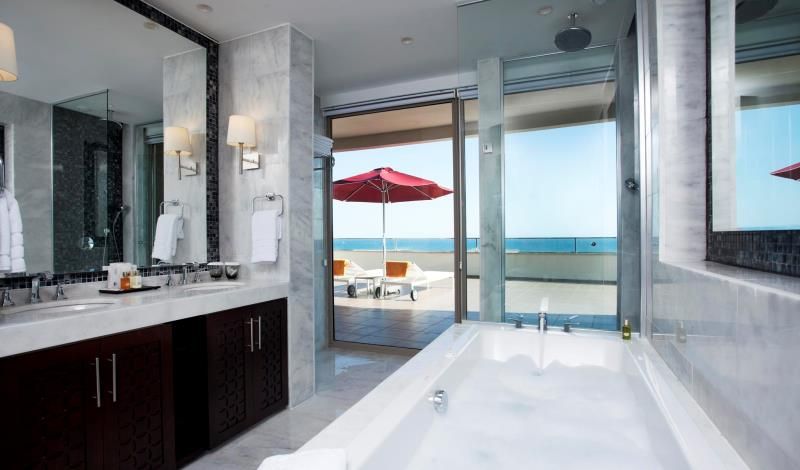 Palazzo Suite Sea View. Количество20. Площадь 108 м2. Вид на море и бассейн,1 спальня (двуспальная кровать), гостиная, 2 туалета, 2 душа, джакузи, терраса с мебелью и шезлонгами, макс. 3+1 чел.