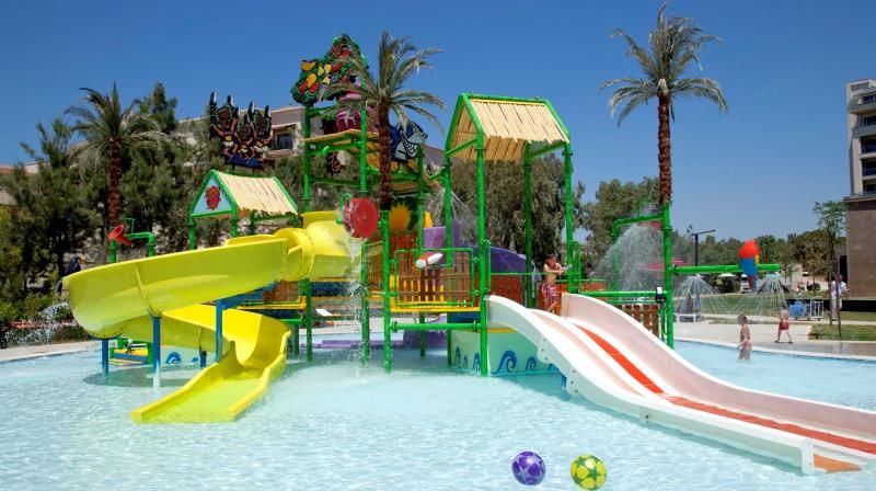 Маленьким гостям предлагаются уникальные возможности для отдыха с множеством разнообразных развлечений: спортивные мероприятия, анимационные программы, туннель приключений, аквапарк, мини-дискотека, фантастический замок, бассейны с водными горками, детские бассейны, джакузи, игровые фонтаны, батут, специальные игровые площадки, площадки с тровяным покрытием, Playstation, прокат багги, кит-кар, трассы, скутеры «Inline», детский ресторан, детская кухня, магазин детских товаров, услуги опытных нянь, спальные комнаты, мастерские ручных работ, велосипеды, библиотека, кинотеатр, интернет-кафе, мини-баскетбол, мини-волейбол, мини-футбол и общие игровые зоны.