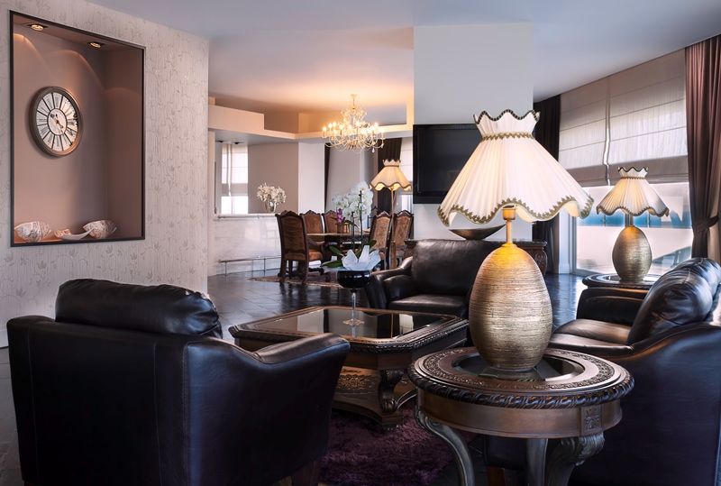 King Suite. Количество 2. Площадь 650 м2: 2 спальни с дверь, гостиная, мини-кухня,  2 ванные: одна с джакузи, другая с душем,  макс. 4 чел.