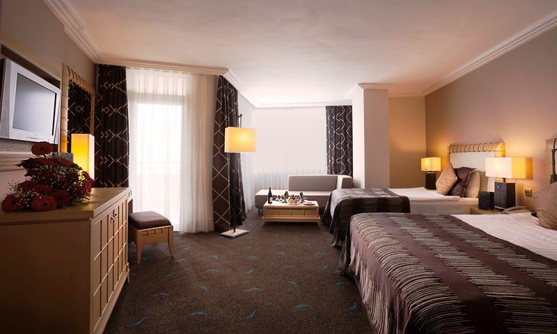 В номерах:  телевизор, сейф, телефон, кондиционер центральный, мини-бар, душ, фен, frenchbedили twinbed, ковровое покрытие пола, Wi-Fi, платно, балкон или терраса.
