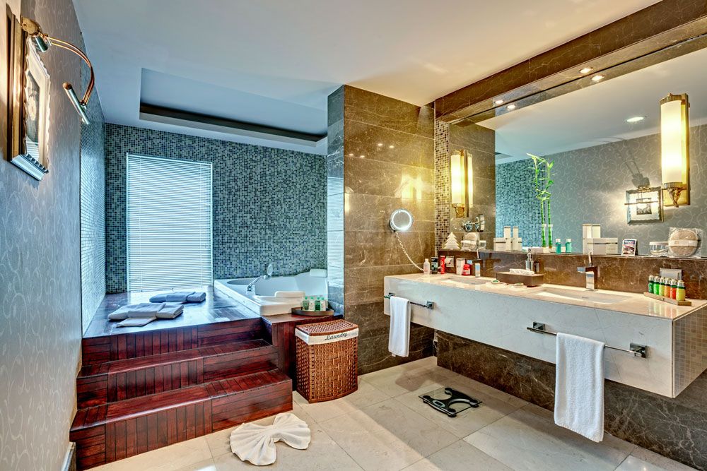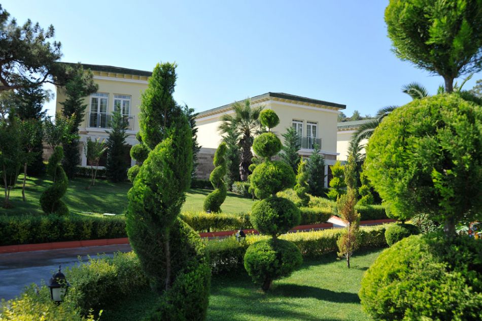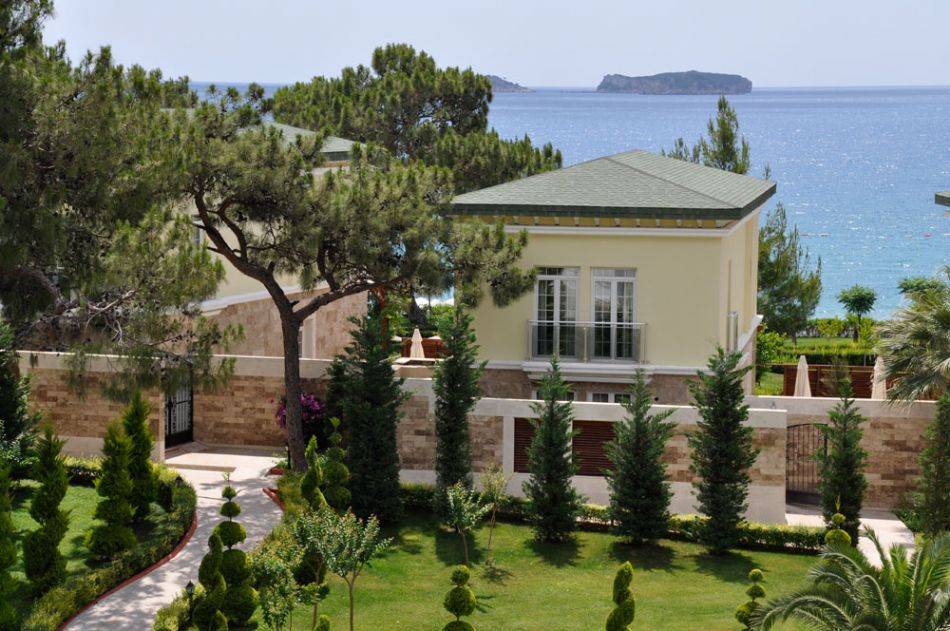 3 двухэтажных villa Grand (c индивидуальным бассейном, с подогревом с террасой; на 1 этаже: американская кухня-столовая и гостиная с мягкой мебелью, тв, тренажерный зал, сауна, санузел, комната для обслуживающего персонала, ванная с душем; на 2 этаже: 4 спальни с дверьми, 3 ванные - две из них с ванной, одна с душем; пол – ковровое покрытие и мрамор, макс. 9 чел., 380 м2, VIP-сервис);