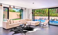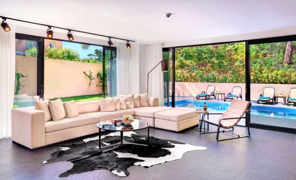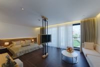 10 двухэтажных villa Superior (c индивидуальным бассейном; на 1 этаже: американская кухня-столовая гостиная с мягкой мебелью, спальня с ванной и гардеробом, санузел; на 2 этаже: 2 спальни с дверью, ванной и гардеробом, макс. 4 чел., 220 м2, VIP-сервис).
