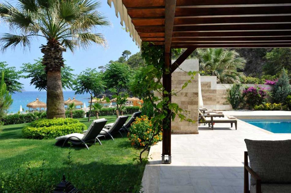 5 двухэтажных villa Deluxe (c индивидуальным бассейном, с подогревом, с террасой; на 1 этаже: американская кухня-столовая и гостиная с мягкой мебелью, ТВ, спальня с дверью, ванная с душем; на 2 этаже: 2 спальни с дверью, 2 ванные - одна из них с душем, другая с душем и ванной; пол – ковровое покрытие и мрамор, макс. 6 чел., 230 м2, VIP-сервис);