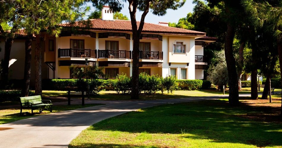 Расположен в 35 км от аэропорта, в 40 км от центра г. Анталья, в 1 км от поселка Белек, на берегу моря. Отель построен в 2 000 году, общая площадь 135 000 м2.Отель состоит из основного 4- этажного здания, двенадцати 2- этажных бунгало и двух отдельных  2- х этажных вилл.