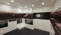 Presidential Suite. Количество 2. Площадь 200 м2: в главном здании, на четвертом этаже,  один трехкомнатный и один четырехкомнатный, с видом на море. Номер состоит из гостиной и двух (трех) спален. В гостиной комнате находится мягкая мебель, обеденный стол на 6 чел., телевизор LCD 32'', рабочий кабинет оборудован всем необходимым (компьютер, принтер, сканер, факс), полностью оборудованная кухня (холодильник, микроволновая печь, посудомоечная машина, плита, кофемашина, электрический чайник, кухонный комбайн).Одна (две) спальня с french bed, мягкая мебель, другая спальня с 2 twin beds. Все спальни с телевизором LCD 32'', ванные комнаты с джакузи и межкомнатными дверями. Терраса со столом и стульями, шезлонги. Покрытие пола – ковролин, паркет, макс. 6 чел. VIP-сервис.