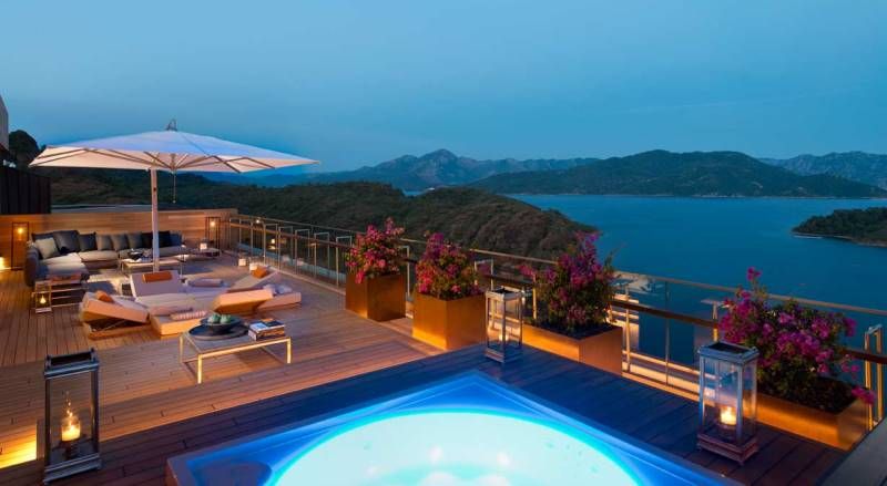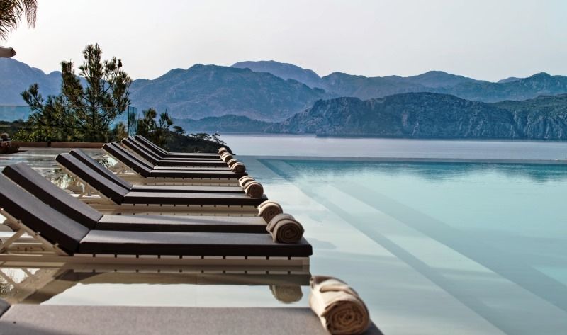 Среди величественных гор, где встречаются Эгейское и Средиземное моря, расположился уникальный курорт, превосходящий все ожидания своими захватывающими видами, маленькими островами, роскошными сосновыми лесами, грядой вулканических гор, кристально-чистой водой и пятью великолепными частными пляжами.