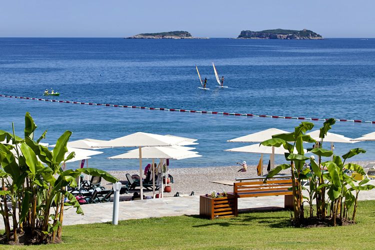 Собственный песчано-галечный пляж, протяженностью 500 м, голубой флаг; шезлонги, зонтики и пляжные полотенца; души и кабинки для переодевания; специальные шатры для принятия солнечных ванн (за дополнительную оплату)