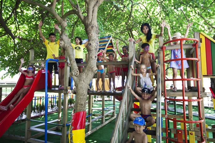 Мини-клуб, дети с 4 до 12 лет; детская площадка; Бассейн 100м2 и маленькая горка; услуги няни: платно; коляска: платно.